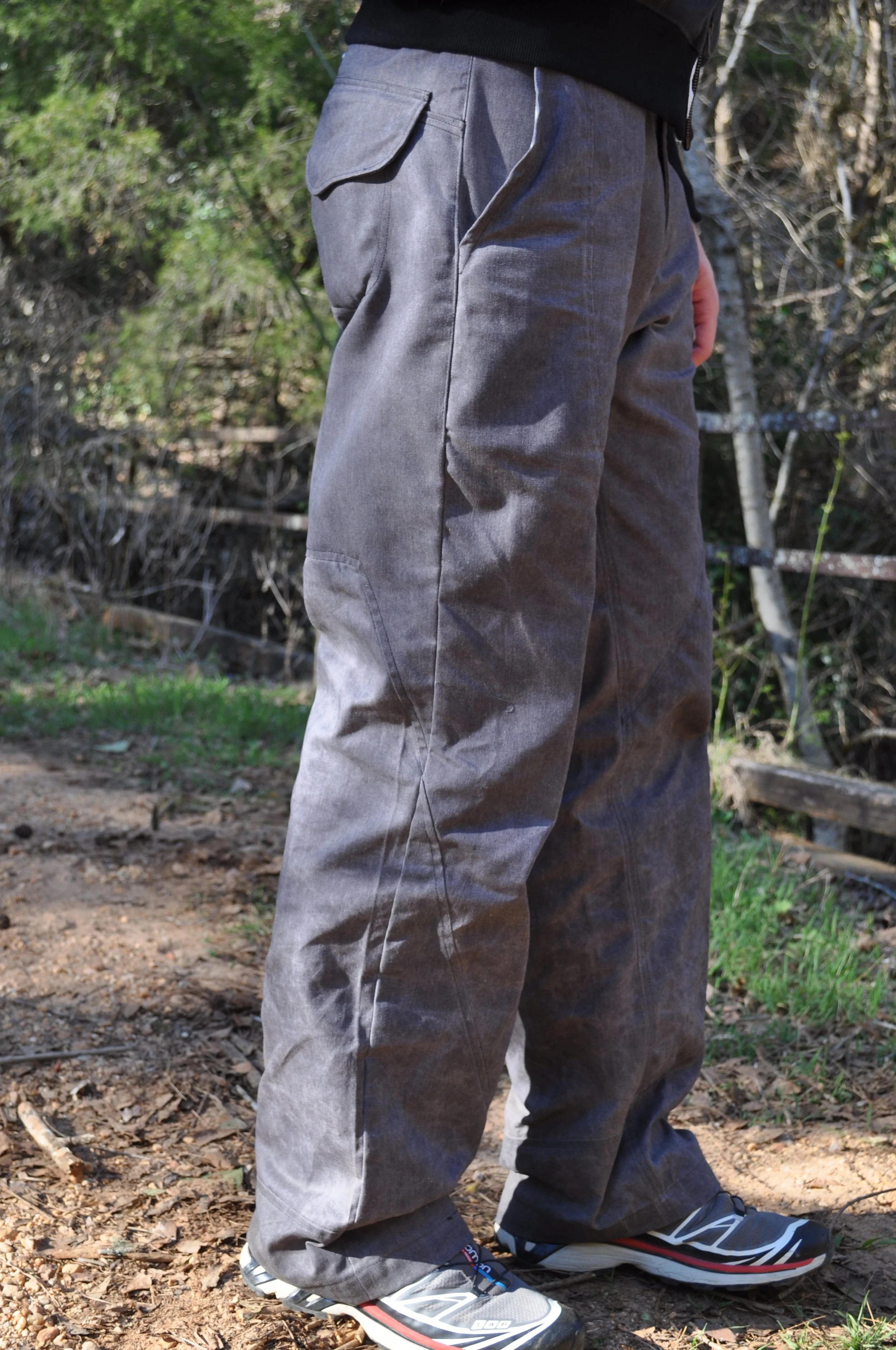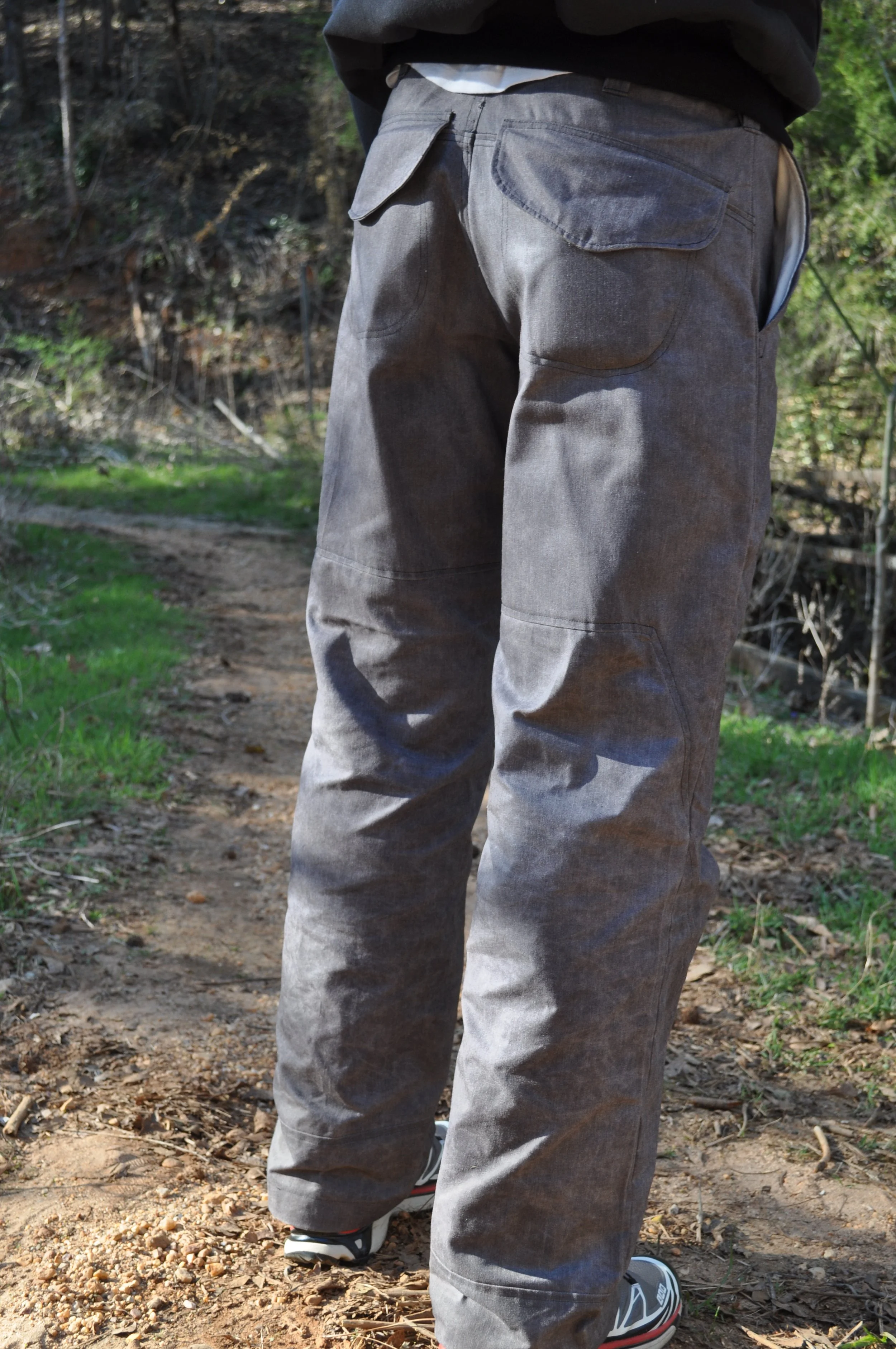 The pants are constructed entirely from 8 oz. waxed twill, offering a natural, durable alternative to the synthetic rain pants commonly found in the outdoor market.